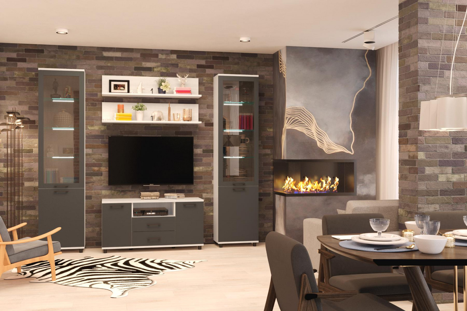 корпус Снежный Ясень, фасад Антрацит Матовый (СЯ-АМ).