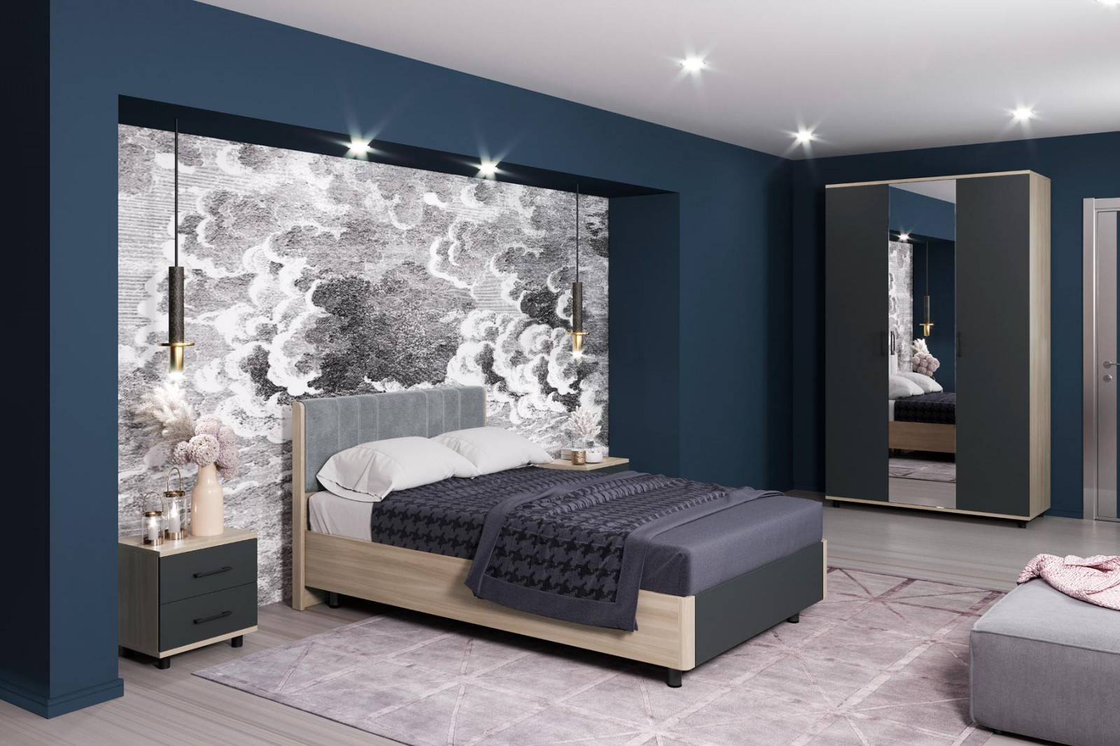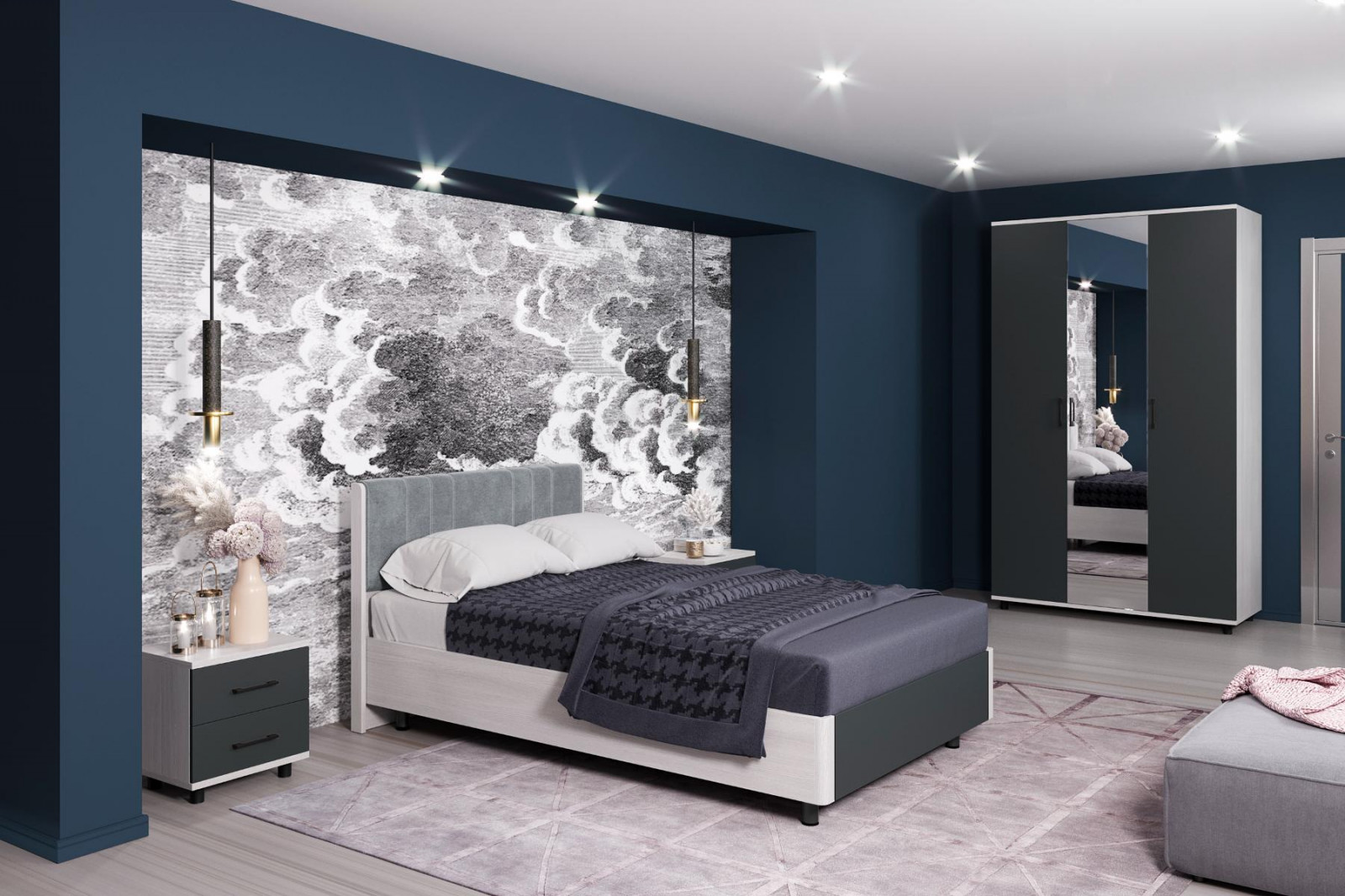 корпус Снежный Ясень, фасад Антрацит Матовый (ШК-5002-СЯ-АМ).