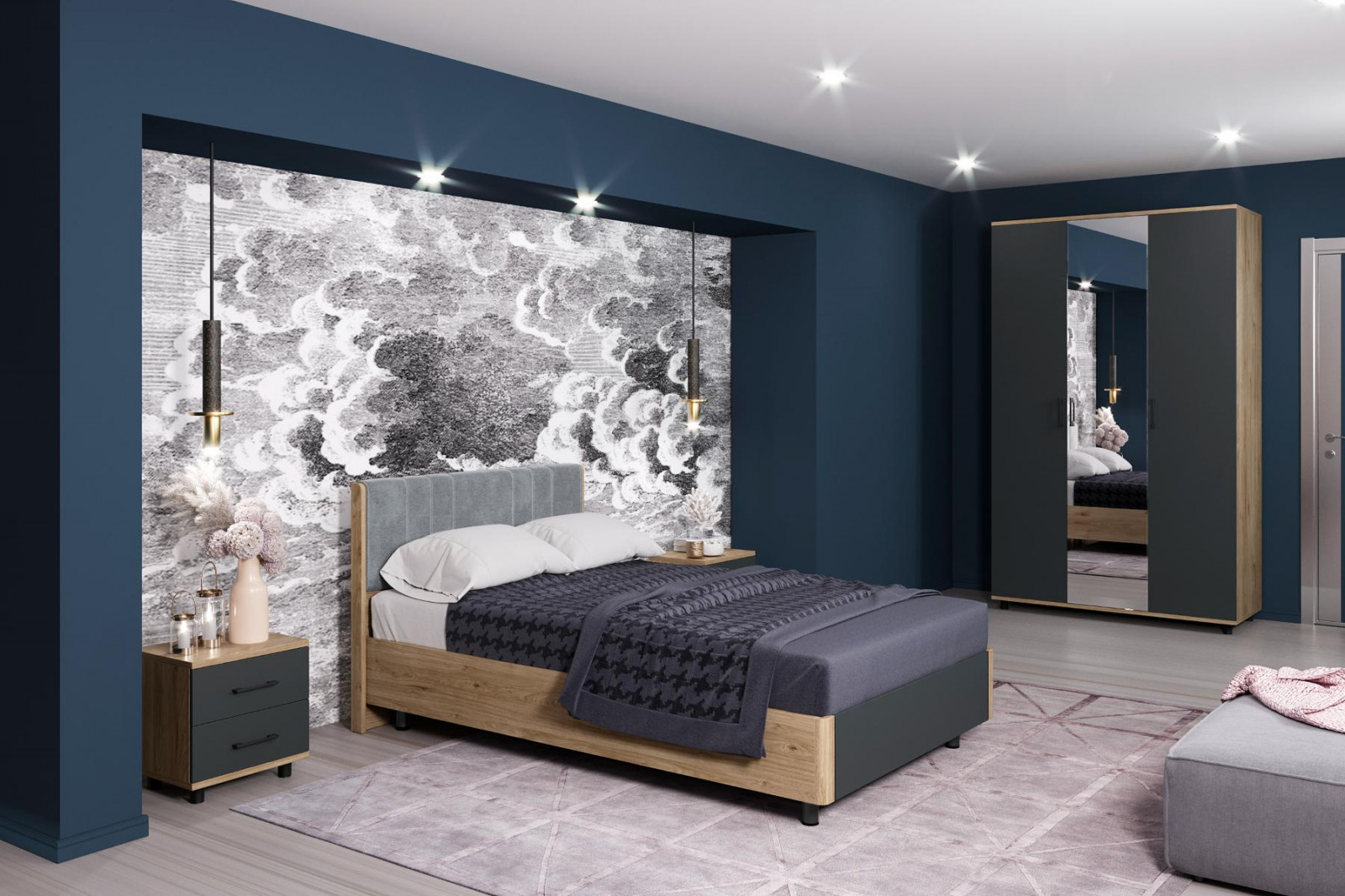 корпус Гикори Джексон Темный, фасад Антрацит Матовый (ШК-5002-ГТ-АМ);