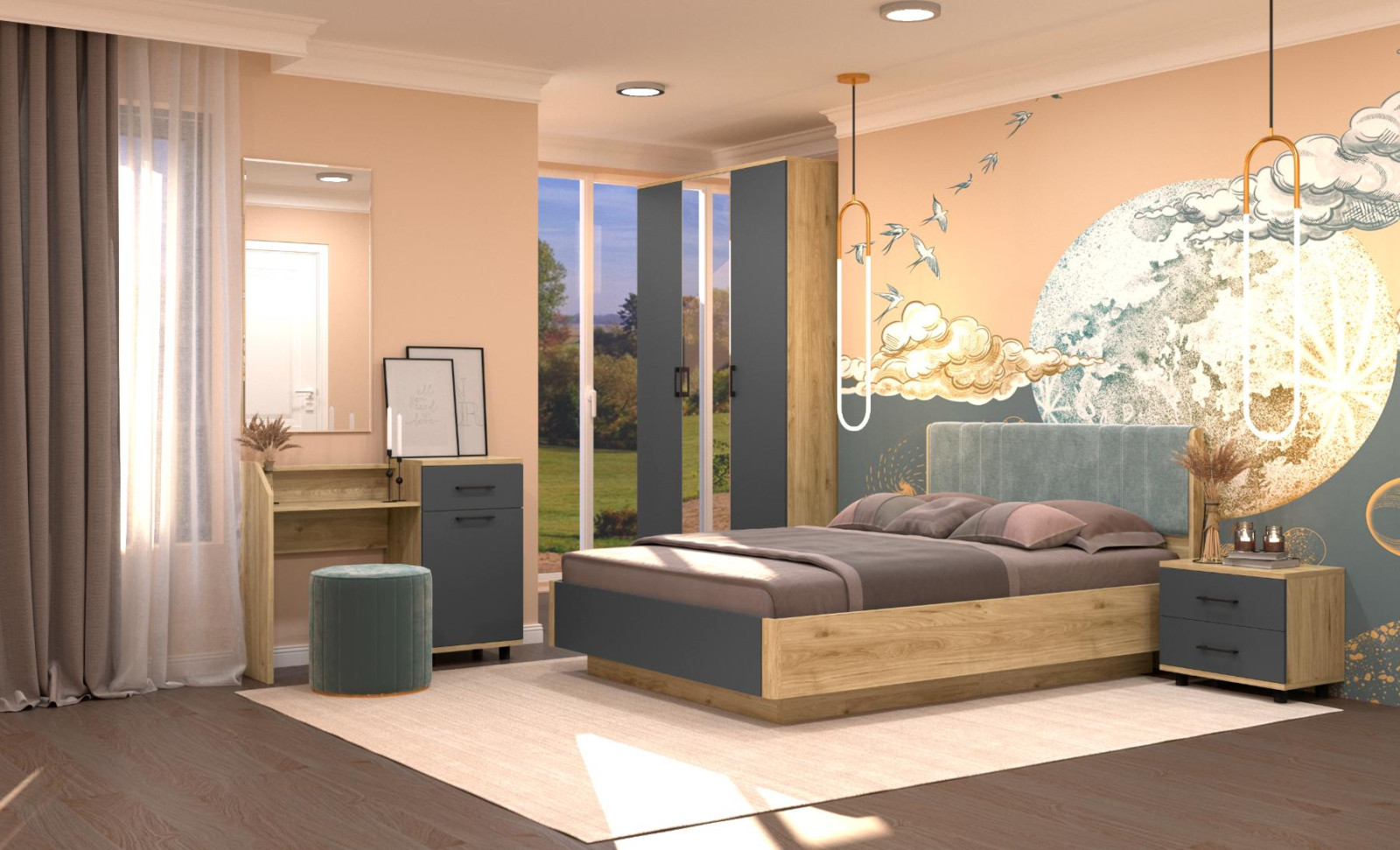корпус Гикори Джексон Темный, фасад Антрацит Матовый (ШК-5002-ГТ-АМ);