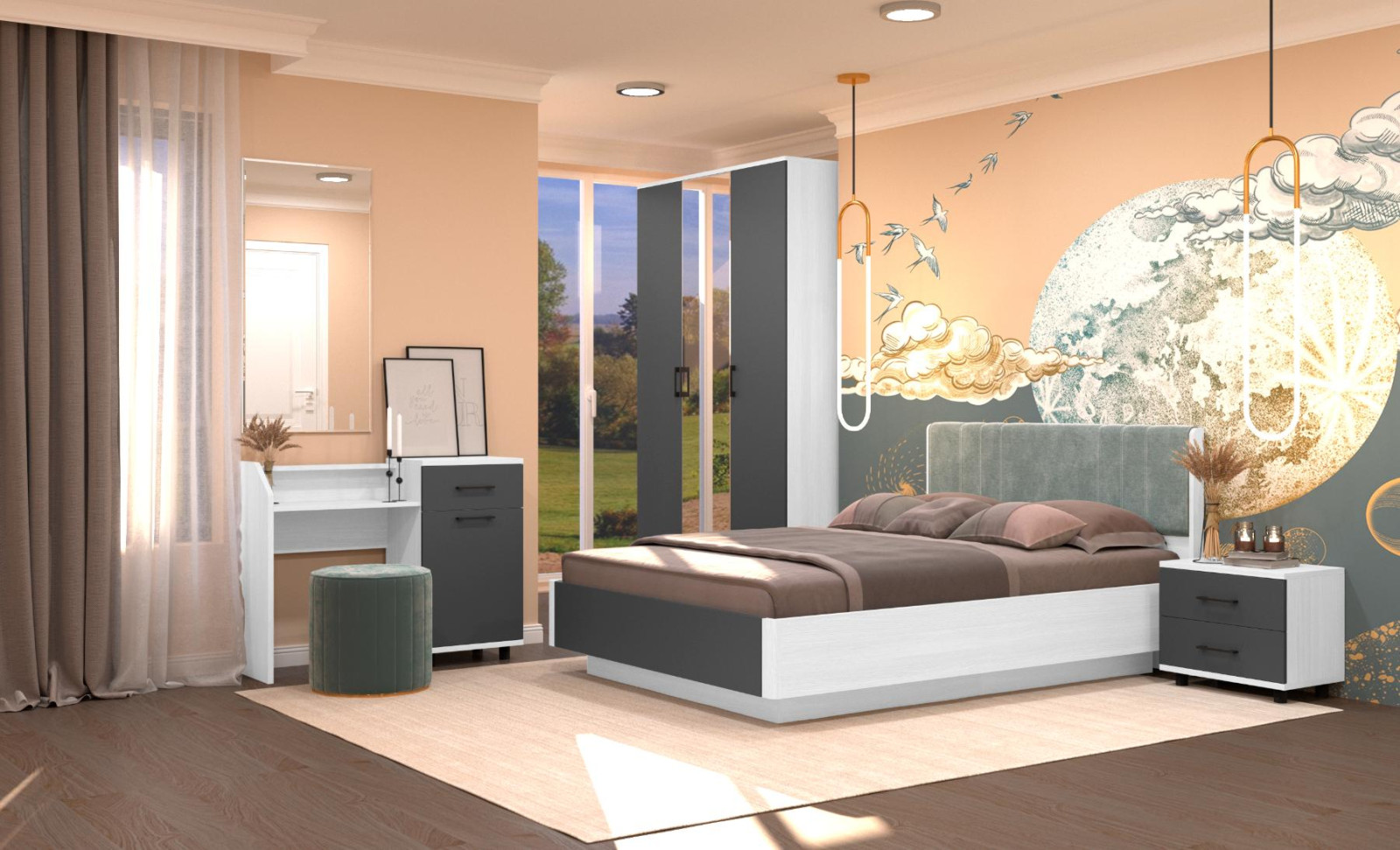 корпус Снежный Ясень, фасад Антрацит Матовый (ШК-5002-СЯ-АМ).