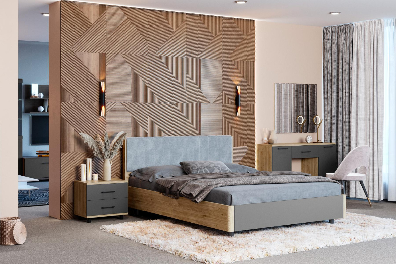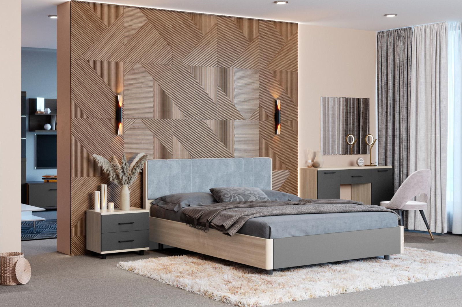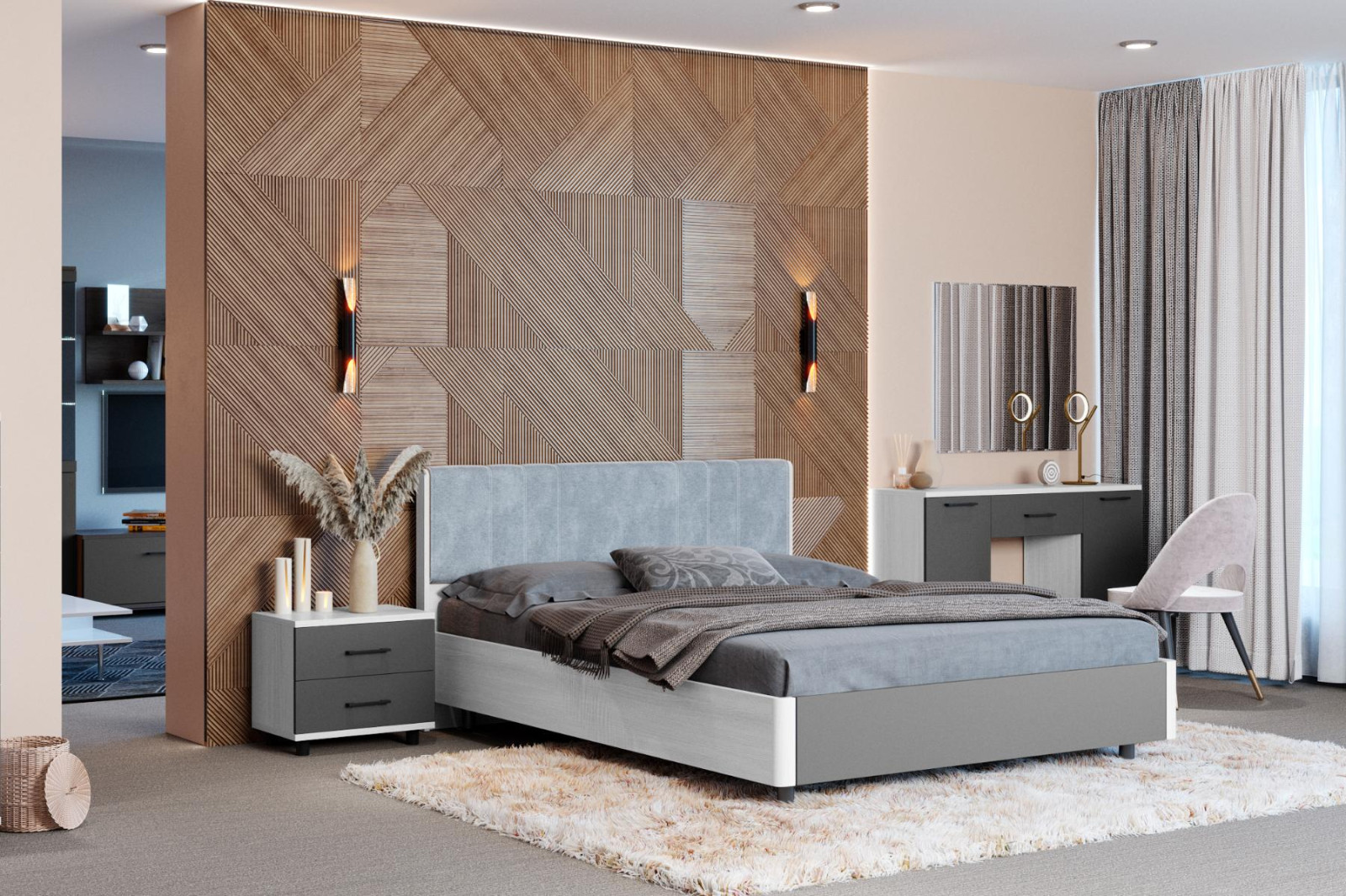 корпус Снежный Ясень, фасад Антрацит Матовый (ШК-5002-СЯ-АМ).